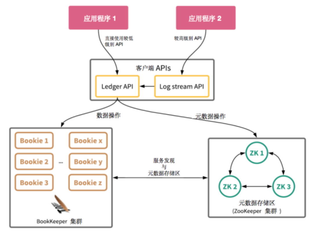 BookKeeper是一个可靠的日志流记录系统,用于将系统产生的日志(也可以是其他数据)记录在BookKeeper集群上,由BookKeeper这个第三方Storage保证数据存储的可靠和一致性。